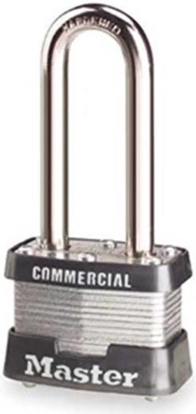 Padlock, Shackle Dia. 9/32 in, Shackle Height 2 in, Shackle Width 5/8 in, Shackle Material Steel, Body Height 1 1/4 in, Body Width 1 9/16 in, Body Thickness 3/4 in, Body Material Steel, Number of Bumpers 2, Number of Pins 4 Pin, Key Type Different, Control Key Registration Required No, Body Color Silver, Keyway Type Master K1, Weather Resistant No, High Security No, Interchangeable Core No, Padlock Body Shape Rectangular, Rekeyable No, Shackle Type Long Shackle. This item has been restricted from sale in the following state (s): []