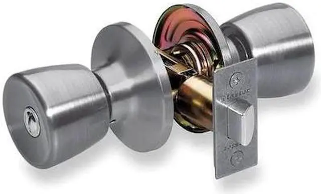 Door Lock, Door Knob, Tulip Style, Satin Nickel Finish, Function Privacy, Grade 3, Material Steel, For Door Thickness 1 3/8 to 1 3/4 In., Backset 2 3/8 to 2 3/4 In., Crossbore Size 2 1/8 In., 2 1/4 x 1 3/4 Strike, Required Door Thickness 1 3/8 to 1 3/4, Standards Meets ANSI Grade 3. This item has been restricted from sale in the following state (s): []