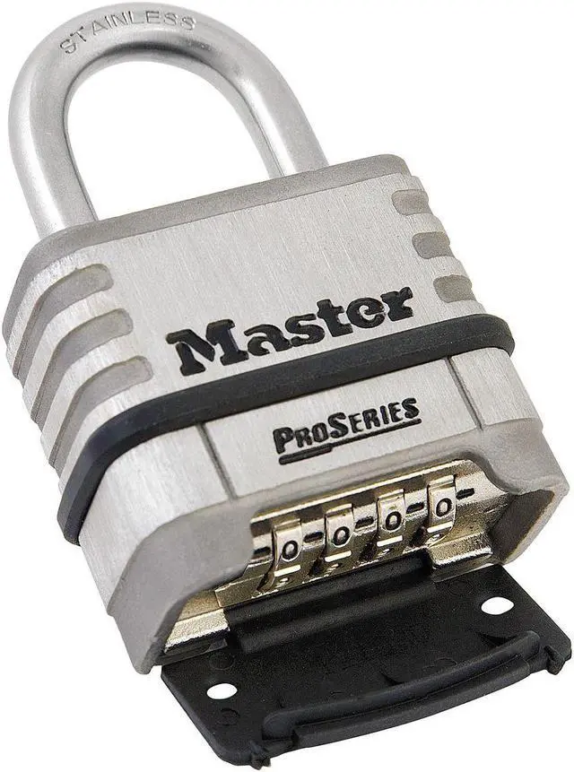Combination Padlock, Body Height 1 7/8 in, Body Material Stainless Steel, Body Thickness 15/16 in, Body Width 2 1/4 in, Control Key Registration Required No, Dial Location Bottom, For Use With Utility Meters, Substations and Cable Boxes, Construction Sites and Equipment, Industrial, Storefront and Business Gates, Key Control No, Key Type Combination, Number of Bumpers 1, Number of Dials 4, Resettable Resettable, Shackle Dia. 5/16 in, Shackle Height 1 1/16 in, Shackle Material Stainless Steel. This item has been restricted from sale in the following state (s): []