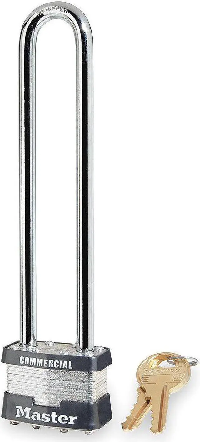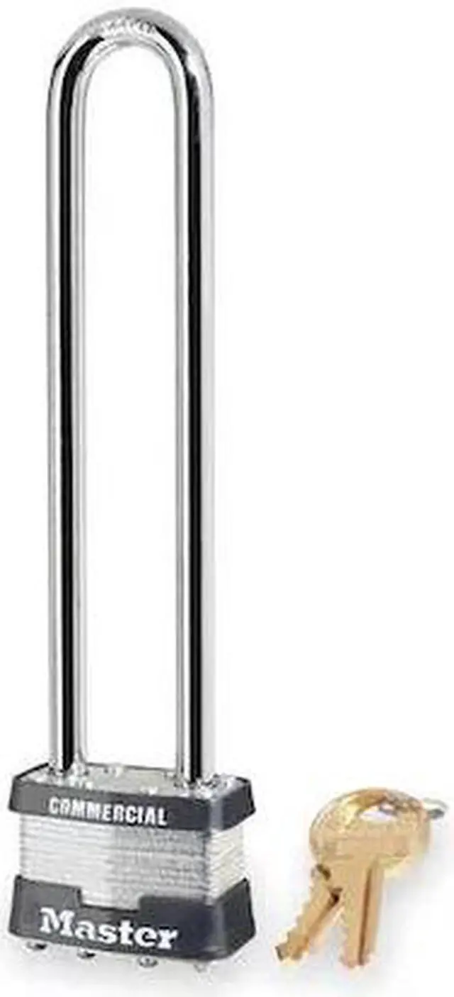 Padlock, Shackle Dia. 5/16 in, Shackle Height 5 3/4 in, Shackle Width 3/4 in, Shackle Material Steel, Body Height 1 5/16 in, Body Width 1 3/4 in, Body Thickness 7/8 in, Body Material Steel, Number of Bumpers 2, Number of Pins 4 Pin, Key Type Different, Control Key Registration Required No, Body Color Silver, Keyway Type Master K6000, Weather Resistant No, High Security Yes, Interchangeable Core No, Padlock Body Shape Rectangular, Rekeyable No, Shackle Type Long Shackle. This item has been restricted from sale in the following state (s): []