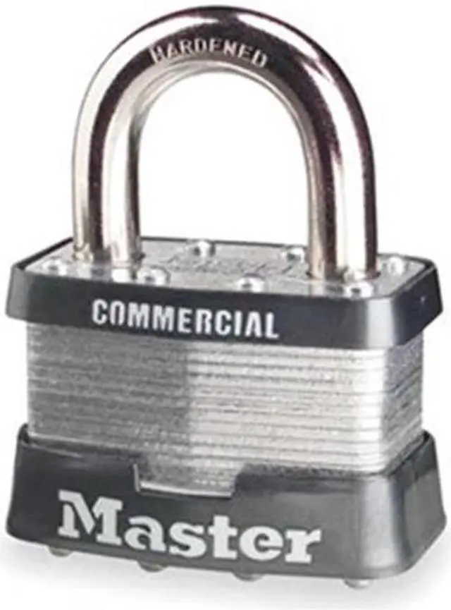 Padlock, Shackle Dia. 3/8 in, Shackle Height 1 in, Shackle Width 15/16 in, Shackle Material Boron, Body Height 1 1/2 in, Body Width 2 in, Body Thickness 1 in, Body Material Steel, Number of Bumpers 2, Number of Pins 4 Pin, Key Type Alike, Control Key Registration Required No, Opens with Key No. A326, Body Color Black/Silver, Keyway Type Master K1, Weather Resistant No, High Security No, Interchangeable Core No, Padlock Body Shape Rectangular, Rekeyable No, Shackle Type Standard Shackle.
