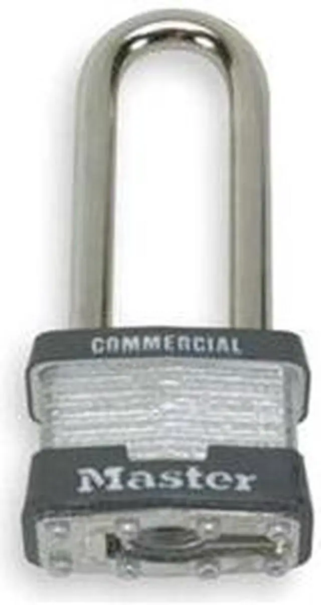 Padlock, Shackle Dia. 5/16 in, Shackle Height 2 1/2 in, Shackle Width 3/4 in, Shackle Material Steel, Body Height 2 13/32 in, Body Width 1 3/4 in, Body Thickness 7/8 in, Body Material Steel, Number of Bumpers 2, Number of Pins 5 Pin, Key Type Alike, Control Key Registration Required No, Opens with Key No. 10L320, For Use With Gates, Cribs, Vending Machines, Commercial, Automotive, Body Color Silver, Body Finish Laminated, Keyway Type Master K27, Weather Resistant No, High Security Yes.