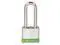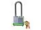 Lockout Padlock, Body Color Green, Body Height 1 1/4 in, Body Material Steel, Body Thickness 3/4 in, Body Width 1 9/16 in, Header Not Applicable, Horizontal Shackle Clearance 5/8 in, Key Style Standard, Key Type Keyed Different, Non-Removable Key No, Resistance Properties Pry Resistant, Shackle Diameter 5/16 in, Shackle Height 2 in, Shackle Material Steel, Shackle Type Extended, Vertical Shackle Clearance 2 in, Width Across Shackle 5/8 in, Body Material Coating Laminated, Bumper Color Green. This item has been restricted from sale in the following state (s): []