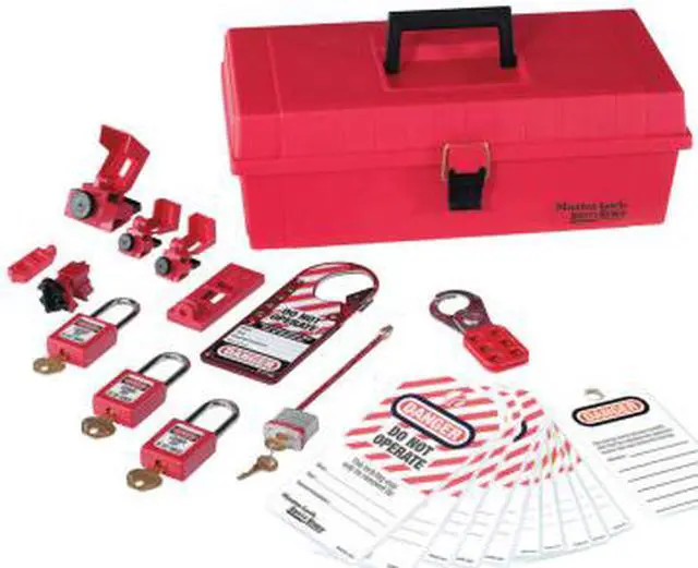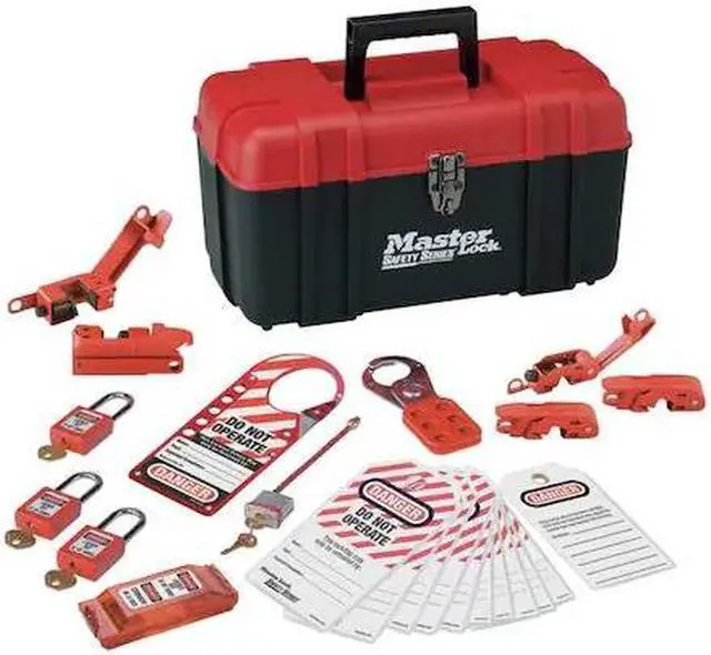 Portable Lockout Kit, Filled Yes, Number of Lockouts Included 8, Number of Tags Included 12, Carrying Case Type Tool Box, For Valve Handle Type Not Applicable, Included Lockout Types Circuit Breaker, Hasp, Language English, Carrying Case Dimensions 15.5 in D x 8 in W x 5.25 in H, Carrying Case Material Plastic, Electrical Lockouts Included (1) Wall Switch Lockout Device, (5) Circuit Breaker Lockout Devices, For Lockout Type Electrical, For Maximum Padlock Shackle Diameter 1/4 in. This item has been restricted from sale in the following state (s): []