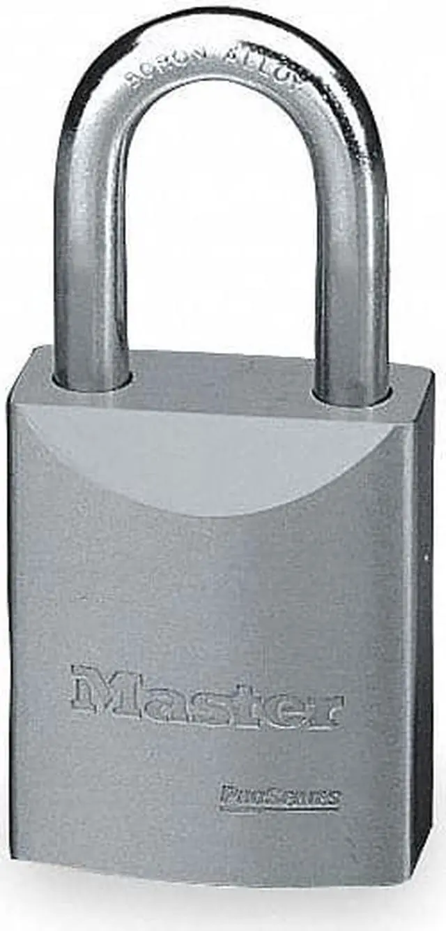 Padlock, Shackle Dia. 5/16 in, Shackle Height 1 3/16 in, Shackle Width 29/32 in, Shackle Material Boron, Body Height 2 5/16 in, Body Width 1 3/4 in, Body Thickness 2 1/2 in, Body Material Steel, Number of Bumpers 0, Number of Pins 5 Pin, Key Type Alike, Control Key Registration Required Yes, Opens with Key No. 11G302, Body Color Silver, Keyway Type Master K6000, Weather Resistant No, High Security Yes, Interchangeable Core No, Non Removable Key No, Padlock Body Shape Rectangular, Rekeyable Yes.