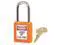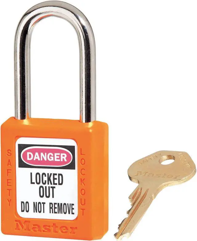 Lockout Padlock, Body Color Orange, Body Height 1 3/4 in, Body Material Thermoplastic, Body Thickness 3/4 in, Body Width 1 1/2 in, Header Danger, Horizontal Shackle Clearance 13/16 in, Key Style Standard, Key Type Keyed Alike, Non-Removable Key Yes, Resistance Properties Chemical Resistant, Shackle Diameter 1/4 in, Shackle Height 1 1/2 in, Shackle Material Hardened Steel, Shackle Type Open, Vertical Shackle Clearance 1 1/2 in, Width Across Shackle 13/16 in. This item has been restricted from sale in the following state (s): []