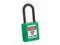 Lockout Padlock, Body Color Green, Body Height 1 3/4 in, Body Material Thermoplastic, Body Thickness 3/4 in, Body Width 1 1/2 in, Header Danger, Horizontal Shackle Clearance 13/16 in, Key Style Standard, Key Type Keyed Alike, Non-Removable Key Yes, Resistance Properties Non-Conductive, Shackle Diameter 1/4 in, Shackle Height 1 1/2 in, Shackle Material Plastic, Shackle Type Open, Vertical Shackle Clearance 1 1/2 in, Width Across Shackle 13/16 in. This item has been restricted from sale in the following state (s): []