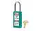 Lockout Padlock, Body Color Teal, Body Height 3 in, Body Material Thermoplastic, Body Thickness 3/4 in, Body Width 1 1/2 in, Header Danger, Horizontal Shackle Clearance 13/16 in, Key Style Standard, Key Type Keyed Different, Non-Removable Key Yes, Resistance Properties Chemical Resistant, Shackle Diameter 1/4 in, Shackle Height 1 1/2 in, Shackle Material Metal, Shackle Type Open, Vertical Shackle Clearance 1 1/2 in, Width Across Shackle 13/16 in, Features Reserved for Safety Cylinder. This item has been restricted from sale in the following state (s): []