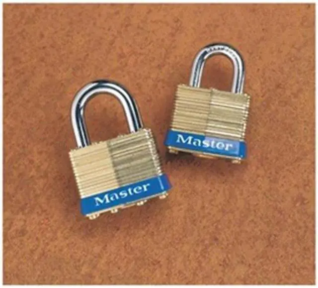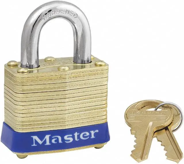 Padlock, Shackle Dia. 9/32 in, Shackle Height 3/4 in, Shackle Width 5/8 in, Shackle Material Steel, Body Height 2 13/16 in, Body Width 1 9/16 in, Body Thickness 3/4 in, Body Material Brass, Number of Bumpers 1, Number of Pins 4 Pin, Key Type Alike, Control Key Registration Required No, Opens with Key No. 3202, Body Color Brass, Body Finish Laminated, Keyway Type Master K1, Weather Resistant Yes, High Security No, Interchangeable Core No, Padlock Body Shape Rectangular, Rekeyable No.