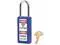 Lockout Padlock, Body Color Blue, Body Height 3 in, Body Material Thermoplastic, Body Thickness 3/4 in, Body Width 1 1/2 in, Header Danger, Horizontal Shackle Clearance 13/16 in, Key Style Standard, Key Type Keyed Alike, Non-Removable Key Yes, Resistance Properties Chemical Resistant, Shackle Diameter 1/4 in, Shackle Height 1 1/2 in, Shackle Material Hardened Steel, Shackle Type Open, Vertical Shackle Clearance 1 1/2 in, Width Across Shackle 13/16 in, Includes (2) Keys, Labels. This item has been restricted from sale in the following state (s): []