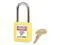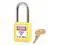 Lockout Padlock, Body Color Yellow, Body Height 1 3/4 in, Body Material Thermoplastic, Body Thickness 3/4 in, Body Width 1 1/2 in, Header Danger, Horizontal Shackle Clearance 13/16 in, Key Style Standard, Key Type Keyed Alike, Non-Removable Key Yes, Resistance Properties Chemical Resistant, Shackle Diameter 1/4 in, Shackle Height 1 1/2 in, Shackle Material Steel, Shackle Type Open, Vertical Shackle Clearance 1 1/2 in, Width Across Shackle 1/4 in, Includes (2) Keys, Labels. This item has been restricted from sale in the following state (s): []