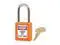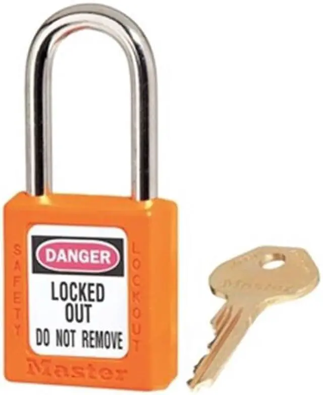 Lockout Padlock, Body Color Orange, Body Height 1 3/4 in, Body Material Thermoplastic, Body Thickness 3/4 in, Body Width 1 1/2 in, Header Danger, Horizontal Shackle Clearance 13/16 in, Key Style Standard, Key Type Keyed Alike, Non-Removable Key Yes, Resistance Properties Chemical Resistant, Shackle Diameter 1/4 in, Shackle Height 1 1/2 in, Shackle Material Steel, Shackle Type Open, Vertical Shackle Clearance 1 1/2 in, Width Across Shackle 1/4 in, Includes (2) Keys, Labels. This item has been restricted from sale in the following state (s): []