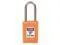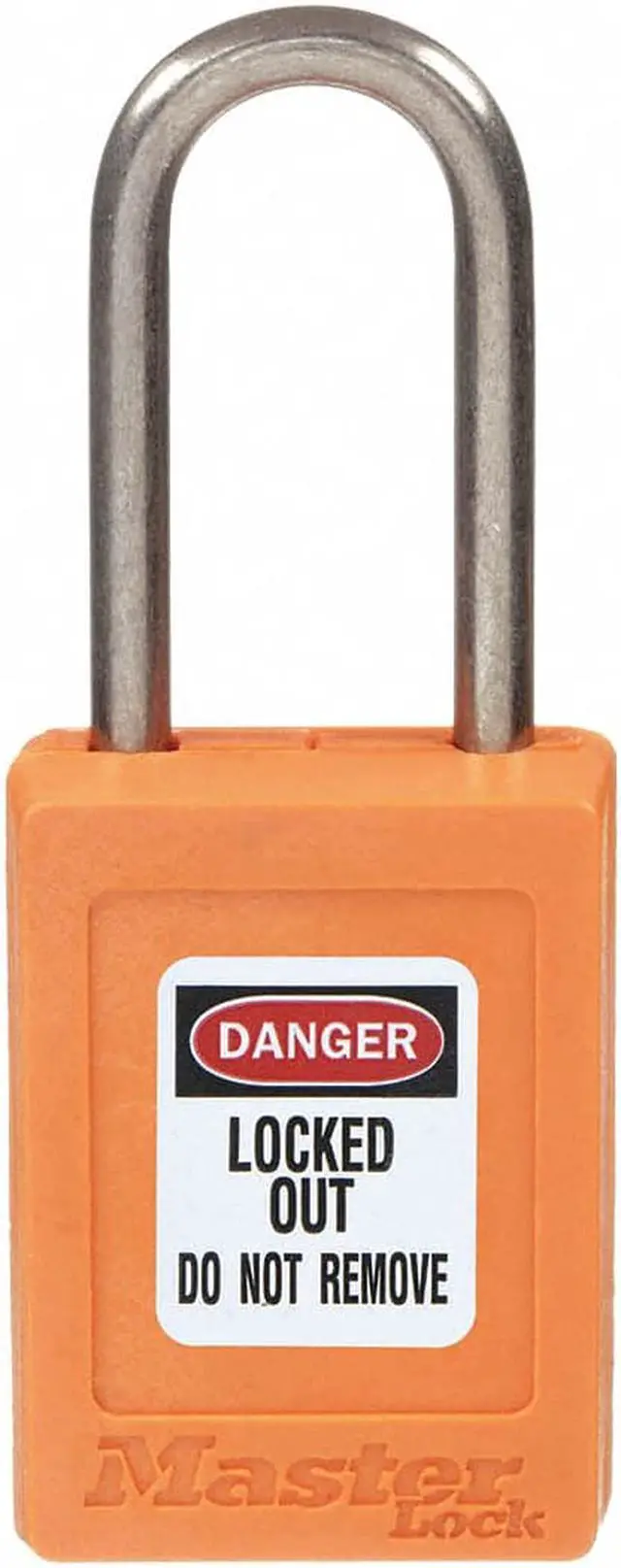 Lockout Padlock, Body Color Orange, Body Height 1 7/8 in, Body Material Thermoplastic, Body Thickness 11/16 in, Body Width 1 3/8 in, Header Danger, Horizontal Shackle Clearance 5/8 in, Key Style Standard, Key Type Keyed Different, Non-Removable Key No, Resistance Properties Corrosion Resistant, Shackle Diameter 3/16 in, Shackle Height 1 1/2 in, Shackle Material Stainless Steel, Shackle Type Open, Vertical Shackle Clearance 1 1/2 in, Width Across Shackle 5/8 in, Includes Labels. This item has been restricted from sale in the following state (s): []