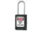 Lockout Padlock, Body Color Black, Body Height 1 7/8 in, Body Material Thermoplastic, Body Thickness 11/16 in, Body Width 1 3/8 in, Header Danger, Horizontal Shackle Clearance 5/8 in, Key Style Standard, Key Type Keyed Alike, Non-Removable Key Yes, Resistance Properties Corrosion Resistant, Shackle Diameter 3/16 in, Shackle Height 1 1/2 in, Shackle Material Stainless Steel, Shackle Type Open, Vertical Shackle Clearance 1 1/2 in, Width Across Shackle 5/8 in, Includes (2) Keys, Labels. This item has been restricted from sale in the following state (s): []