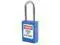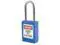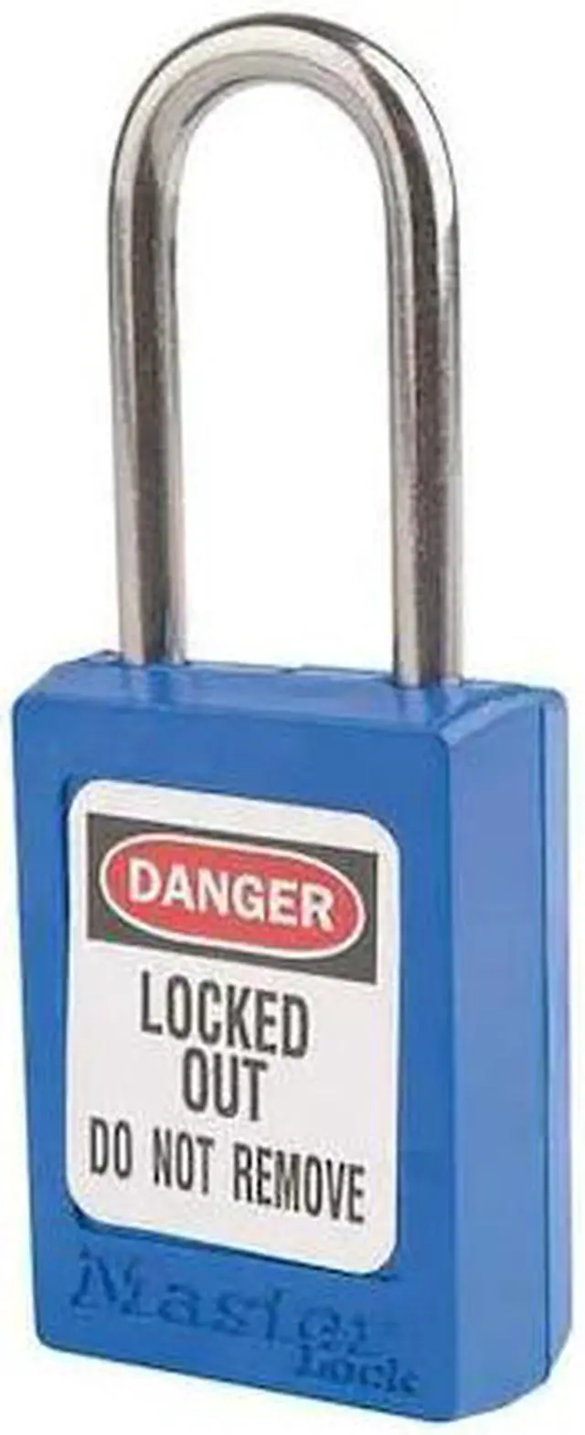 Lockout Padlock, Body Color Blue, Body Height 1 13/16 in, Body Material Thermoplastic, Body Thickness 11/16 in, Body Width 1 3/8 in, Header Danger, Horizontal Shackle Clearance 5/8 in, Key Style Standard, Key Type Keyed Alike, Non-Removable Key Yes, Resistance Properties Corrosion Resistant, Shackle Diameter 3/16 in, Shackle Height 1 1/2 in, Shackle Material Stainless Steel, Shackle Type Open, Vertical Shackle Clearance 1 1/2 in, Width Across Shackle 5/8 in, Includes (2) Keys, Labels. This item has been restricted from sale in the following state (s): []