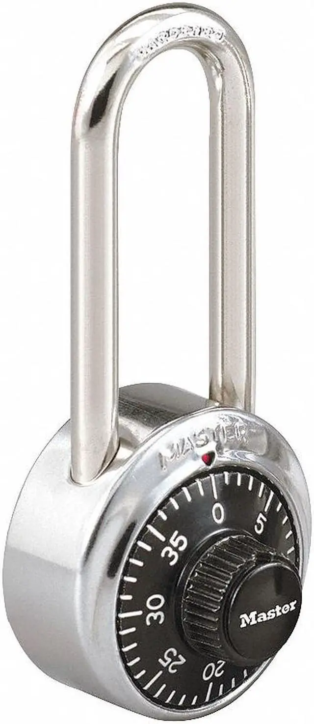 Combination Padlock, Body Height 3/4 in, Body Material Stainless Steel, Body Thickness 3/4 in, Body Width 1 7/8 in, Body Color Black/Silver, Control Key Registration Required Yes, Dial Location Front, For Use With Cabinets, Office Environments and Equipment, School, Employee and Athletic Lockers, Storage Lockers, Key Control Override, Key Type Combination, Number of Bumpers 0, Number of Dials 1, Opens with Key No. Mfr. No. V660, Shackle Dia. 9/32 in, Shackle Height 2 in. This item has been restricted from sale in the following state (s): []