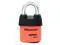 Lockout Padlock, Body Color Orange, Body Height 2 1/8 in, Body Material Steel, Body Thickness 1 in, Body Width 2 1/8 in, Header Not Applicable, Key Style Not Applicable, Key Type Keyed Alike, Non-Removable Key Not Applicable, Resistance Properties Not Applicable, Shackle Diameter 5/16 in, Shackle Height 1 1/8 in, Shackle Material Boron Alloy, Shackle Type Open, Width Across Shackle 7/8 in, Body Material Coating Laminated, Features Weather Tough Cover, For Location Outdoor. This item has been restricted from sale in the following state (s): []