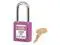 Lockout Padlock, Body Color Purple, Body Height 1 3/4 in, Body Material Thermoplastic, Body Thickness 3/4 in, Body Width 1 1/2 in, Header Danger, Horizontal Shackle Clearance 13/16 in, Key Style Standard, Key Type Keyed Alike, Non-Removable Key Yes, Resistance Properties Chemical Resistant, Shackle Diameter 1/4 in, Shackle Height 1 1/2 in, Shackle Material Metal, Shackle Type Open, Vertical Shackle Clearance 1 1/2 in, Width Across Shackle 13/16 in, Features Reserved for Safety Cylinder. This item has been restricted from sale in the following state (s): []