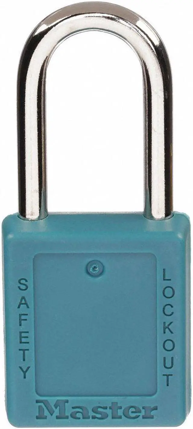 Lockout Padlock, Body Color Teal, Body Height 1 3/4 in, Body Material Thermoplastic, Body Thickness 3/4 in, Body Width 1 1/2 in, Header Danger, Horizontal Shackle Clearance 13/16 in, Key Style Standard, Key Type Keyed Different, Non-Removable Key Yes, Resistance Properties Chemical Resistant, Shackle Diameter 1/4 in, Shackle Height 1 1/2 in, Shackle Material Metal, Shackle Type Open, Vertical Shackle Clearance 1 1/2 in, Width Across Shackle 13/16 in, Features Non-Conductive. This item has been restricted from sale in the following state (s): []