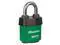 Lockout Padlock, Body Color Green, Body Height 2 1/8 in, Body Material Steel, Body Thickness 1 in, Body Width 2 1/8 in, Header Not Applicable, Key Style Not Applicable, Key Type Keyed Alike, Non-Removable Key Not Applicable, Resistance Properties Not Applicable, Shackle Diameter 5/16 in, Shackle Height 1 1/8 in, Shackle Material Boron Alloy, Shackle Type Open, Width Across Shackle 7/8 in, Body Material Coating Laminated, Features Weather Tough Cover, For Location Outdoor. This item has been restricted from sale in the following state (s): []