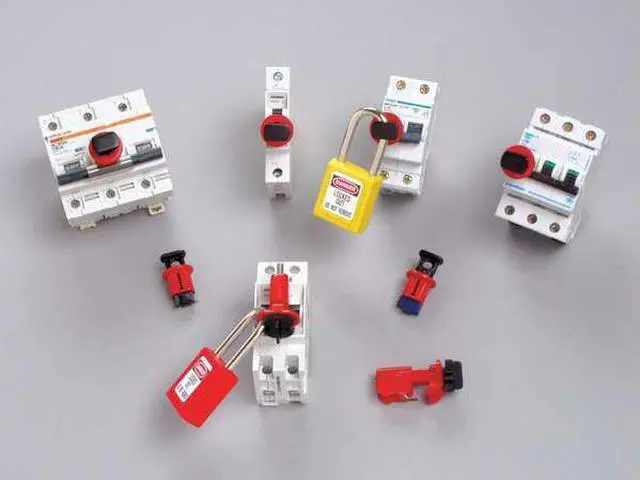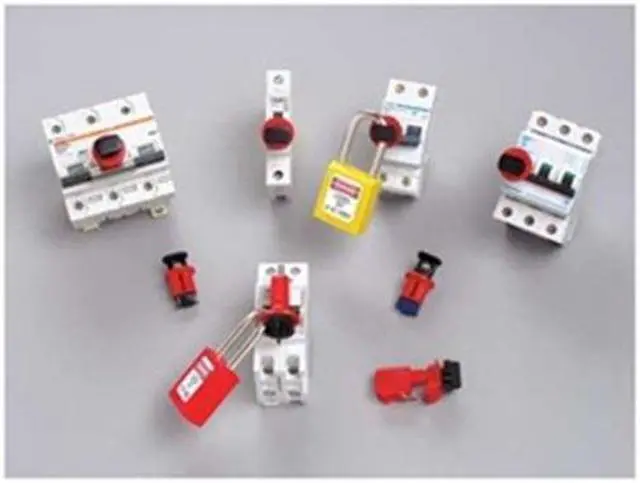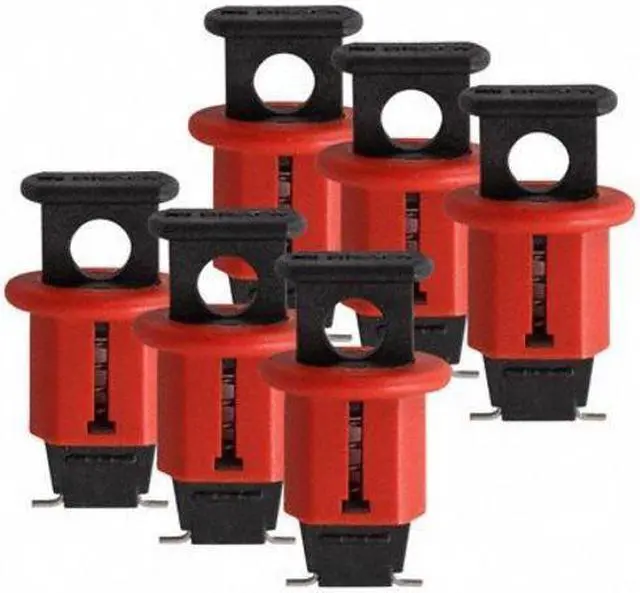 Circuit Breaker Lockout, Pin-Out, Standard, Circuit Breaker Voltage 120/277, Padlock Shackle Max. Dia. 9/32 in, Red, Height 1 5/8 in, Width 15/16 in, Length 9/16 in, Material Fiberglass Reinforced Nylon, Package Quantity 6. This item has been restricted from sale in the following state (s): []