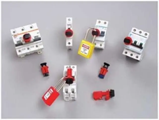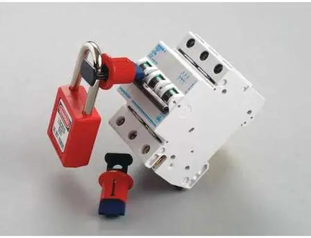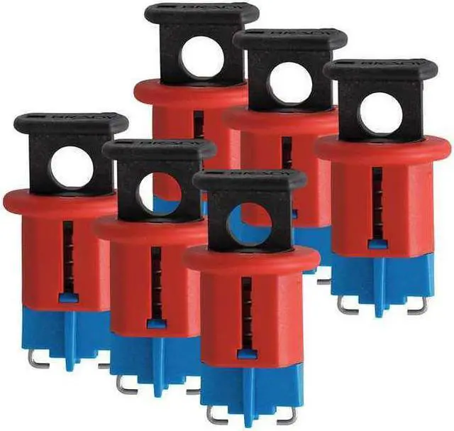 Circuit Breaker Lockout, Pin-In, Standard, Max. Number of Padlocks 6, Padlock Shackle Max. Dia. 9/32 in, Red, Height 1 5/8 in, Width 15/16 in, Length 9/16 in, Material Fiberglass Reinforced Nylon, Package Quantity 6. This item has been restricted from sale in the following state (s): []