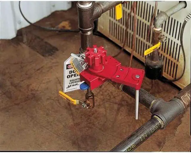 Blocking Arm, Red, Material Steel/Nylon, Handle Thickness 19/32 in, Handle Width 1 in, Height 6 1/5 in, Width 2 1/10 in, Length 5 1/2 in, Temp. Range 0 Degrees to 250 Degrees F, For Use With Small Universal Valve Lockout. This item has been restricted from sale in the following state (s): []