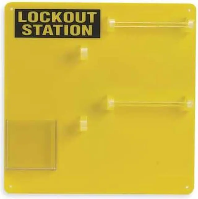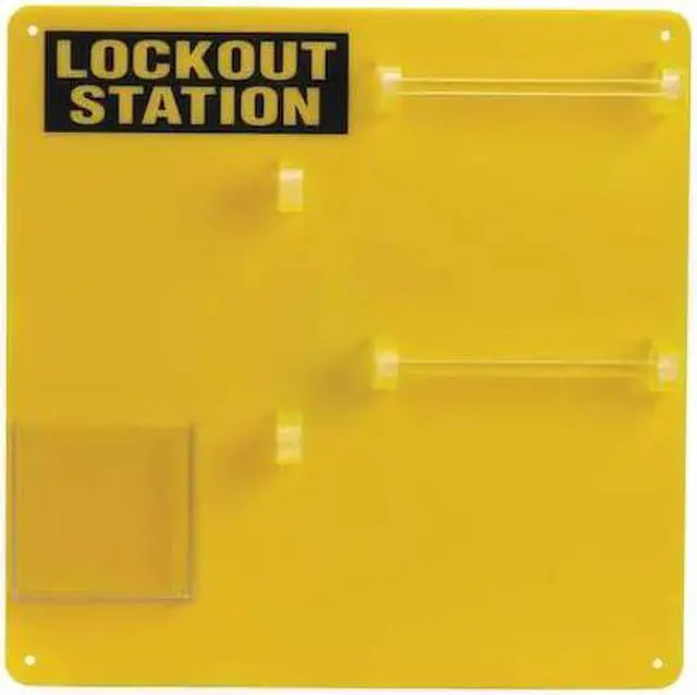 Lockout Board, Cable Lockouts Included Not Applicable, Cover Type Open Front, Electrical Lockouts Included Not Applicable, Filled No, Number of Hasps Included 0, Number of Lockouts Included 0, Number of Padlocks Included 0, Number of Tags Included 0, Visibility Inside Board Only, Language English, Mount Type Wall Mount, Background Color Yellow, Legend Lockout Station, Legend Color Yellow, Legend Type Text, Material Acrylic, Mounting Location Wall, Number of Compartments 1, Number of Hooks 2