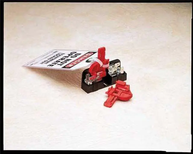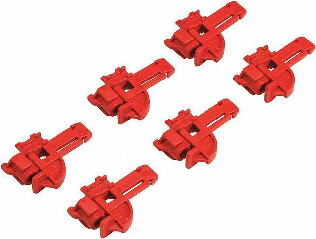 Fuse Blockout Device, For Use With Fuse Size 13/32 in, Max. Number of Padlocks 6, Red, Height 53 in, Width 15 3/8 in, Length 1 7/16 in, Material Plastic, Package Quantity 6. This item has been restricted from sale in the following state (s): []