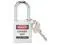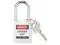 Lockout Padlock, Key Type Different, Body Material Thermoplastic, Shackle Dia. 1/4 In., Shackle Height 1-1/2 In., Shackle Material Hardened Steel, Shackle Width 3/4 In., Body Width 1-1/2 In., Body Thickness 4/5 In., Includes English, Spanish, French Lockout Labels, Standards OSHA 1910.147, Body Height 1-3/4 In., Body Color White, Control Key Registration Required No, Shackle Type Open, Number of Keys 1, Number of Pins 6, Padlock Body Shape Rectangular. This item has been restricted from sale in the following state (s): []