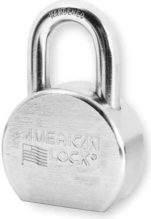 Padlock, Shackle Dia. 7/16 in, Shackle Height 1 1/16 in, Shackle Width 15/16 in, Shackle Material Boron, Body Width 2 1/2 in, Body Thickness 1 1/8 in, Body Material Steel, Number of Bumpers 0, Number of Pins 5 Pin, Key Type Different, Control Key Registration Required No, Opens with Key No. 27234, Body Color Silver, Body Dia. 2 1/2 in, Keyway Type American AK5, Weather Resistant Yes, High Security Yes, Interchangeable Core No, Padlock Body Shape Round, Rekeyable Yes.