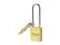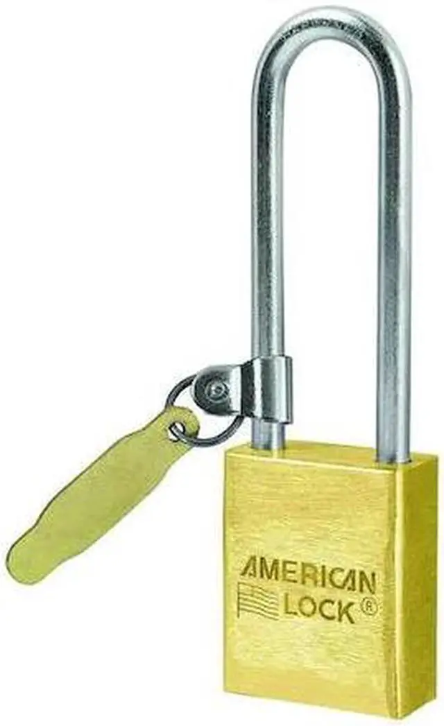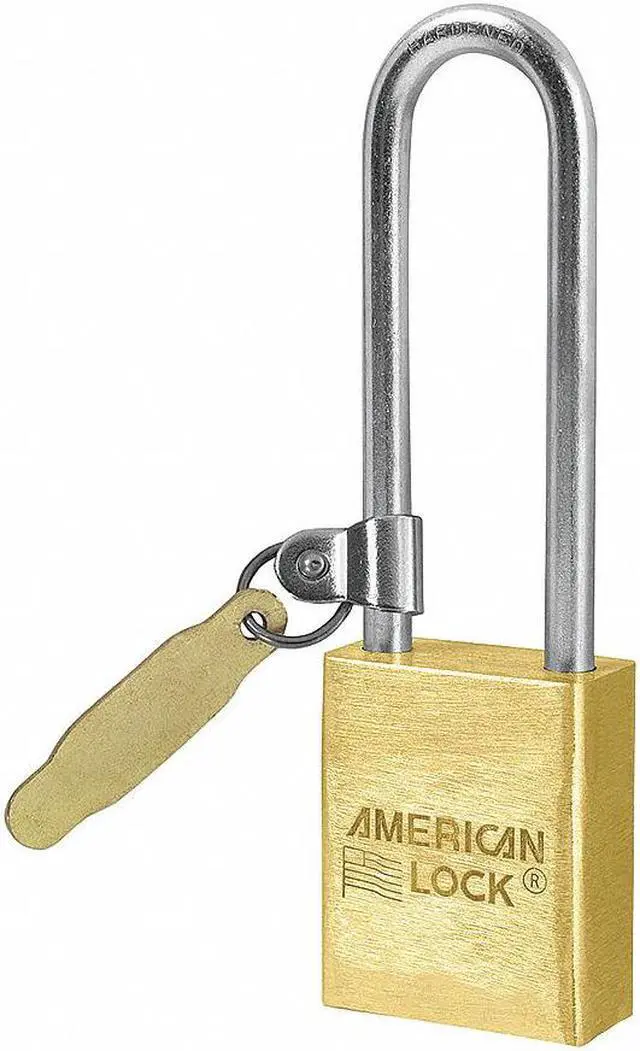 Padlock, Shackle Dia. 1/4 in, Shackle Height 3 in, Shackle Width 3/4 in, Shackle Material Boron, Body Height 1 13/16 in, Body Width 1 1/2 in, Body Thickness 3/4 in, Body Material Brass, Number of Bumpers 0, Number of Pins 5 Pin, Key Type Different, Control Key Registration Required No, Opens with Key No. 25314, Body Color Gold, Keyway Type American AK5, Weather Resistant Yes, High Security Yes, Interchangeable Core No, Padlock Body Shape Rectangular, Rekeyable No, Shackle Type Long Shackle.