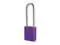 Lockout Padlock, Body Color Purple, Body Height 1 7/8 in, Body Material Aluminum, Body Thickness 3/4 in, Body Width 1 1/2 in, Header Not Applicable, Horizontal Shackle Clearance 13/16 in, Key Style Standard, Key Type Keyed Alike, Non-Removable Key No, Resistance Properties Corrosion Resistant, Shackle Diameter 1/4 in, Shackle Height 3 in, Shackle Material Boron Alloy, Shackle Type Extended, Vertical Shackle Clearance 3 in, Width Across Shackle 13/16 in, Body Material Coating Anodized. This item has been restricted from sale in the following state (s): []