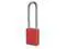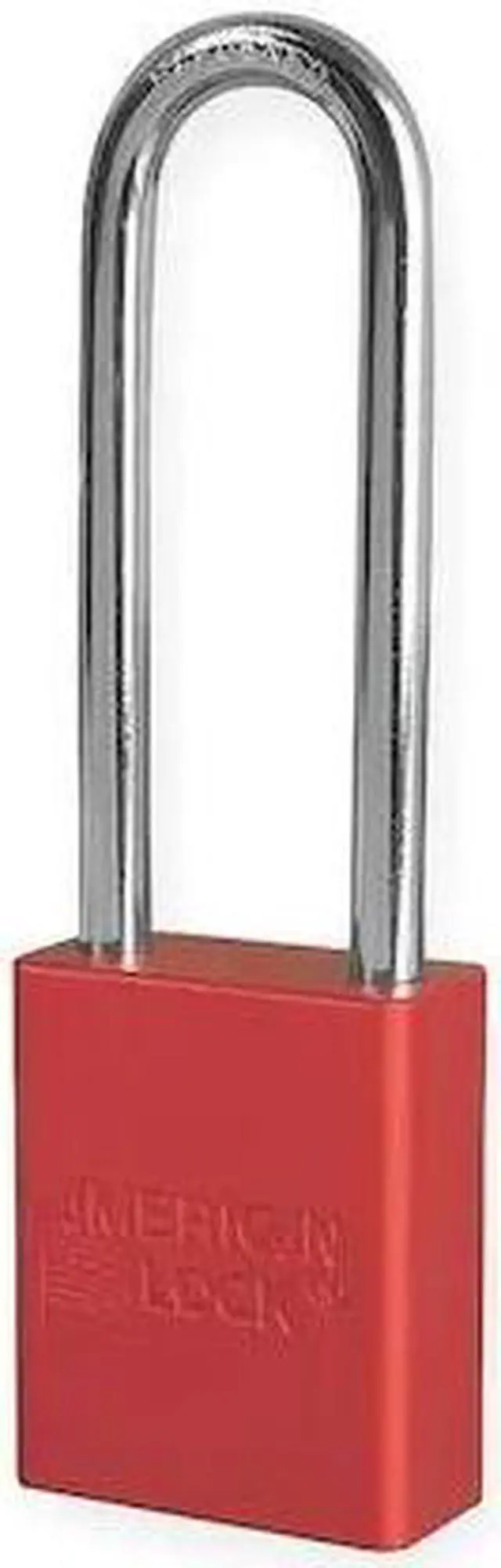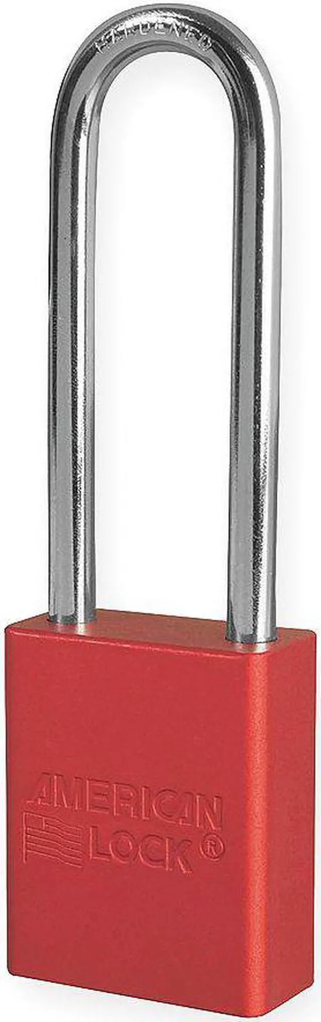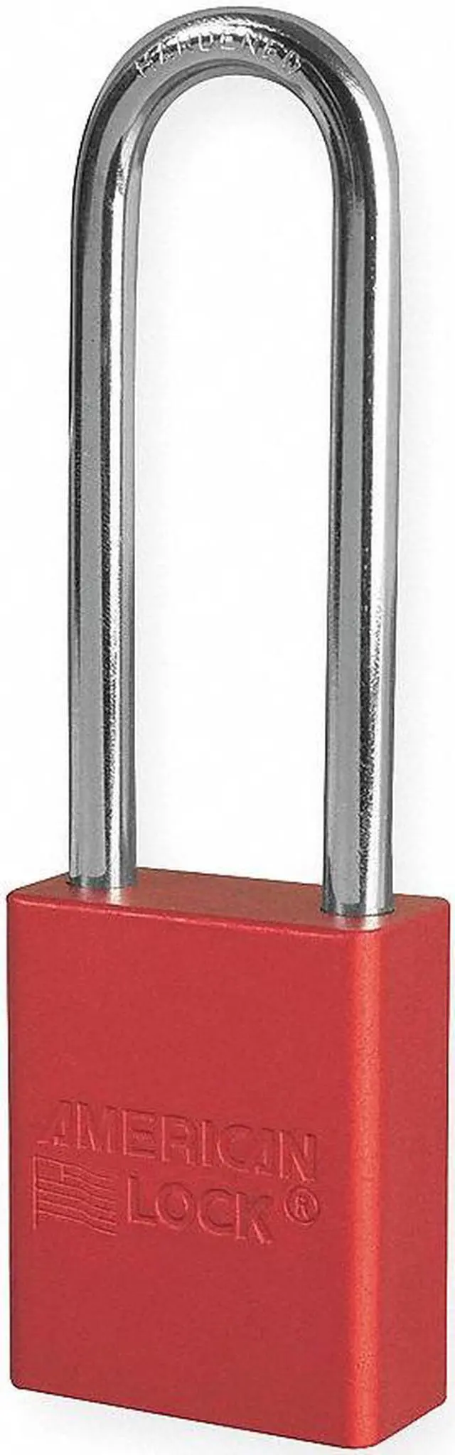 Lockout Padlock, Body Color Red, Body Height 1 7/8 in, Body Material Aluminum, Body Thickness 3/4 in, Body Width 1 1/2 in, Header Not Applicable, Horizontal Shackle Clearance 13/16 in, Key Style Standard, Key Type Keyed Alike, Non-Removable Key No, Resistance Properties Corrosion Resistant, Shackle Diameter 1/4 in, Shackle Height 3 in, Shackle Material Boron Alloy, Shackle Type Extended, Vertical Shackle Clearance 3 in, Width Across Shackle 13/16 in, Body Material Coating Anodized. This item has been restricted from sale in the following state (s): []
