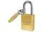Padlock, Shackle Dia. 1/4 in, Shackle Height 1 1/2 in, Shackle Width 3/4 in, Shackle Material Boron, Body Height 1 13/16 in, Body Width 1 1/2 in, Body Thickness 3/4 in, Body Material Brass, Number of Bumpers 0, Number of Pins 5 Pin, Key Type Alike, Control Key Registration Required No, Opens with Key No. 25314, Body Color Gold, Body Finish Zinc Plated, Keyway Type American AK5, Weather Resistant Yes, High Security Yes, Interchangeable Core No, Padlock Body Shape Rectangular, Rekeyable No.