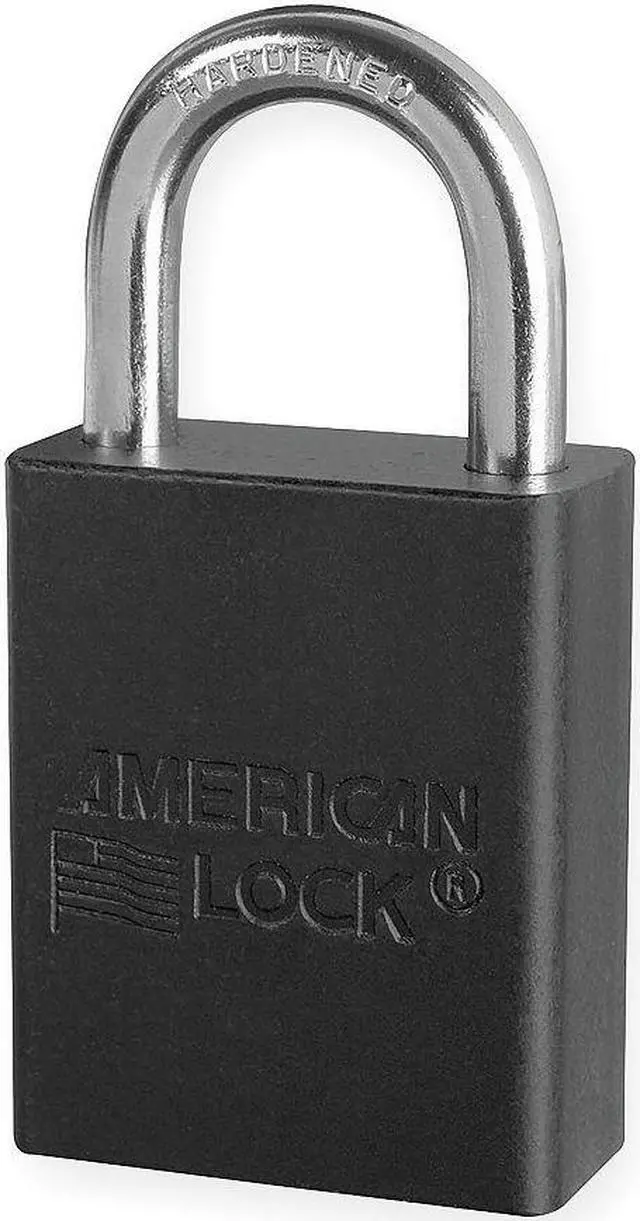 Lockout Padlock, Body Color Black, Body Height 1 7/8 in, Body Material Aluminum, Body Thickness 3/4 in, Body Width 1 1/2 in, Header Not Applicable, Horizontal Shackle Clearance 13/16 in, Key Style Standard, Key Type Keyed Alike, Non-Removable Key No, Resistance Properties Corrosion Resistant, Shackle Diameter 1/4 in, Shackle Height 1 in, Shackle Material Boron Alloy, Shackle Type Open, Vertical Shackle Clearance 1 in, Width Across Shackle 13/16 in, Body Material Coating Anodized. This item has been restricted from sale in the following state (s): []