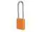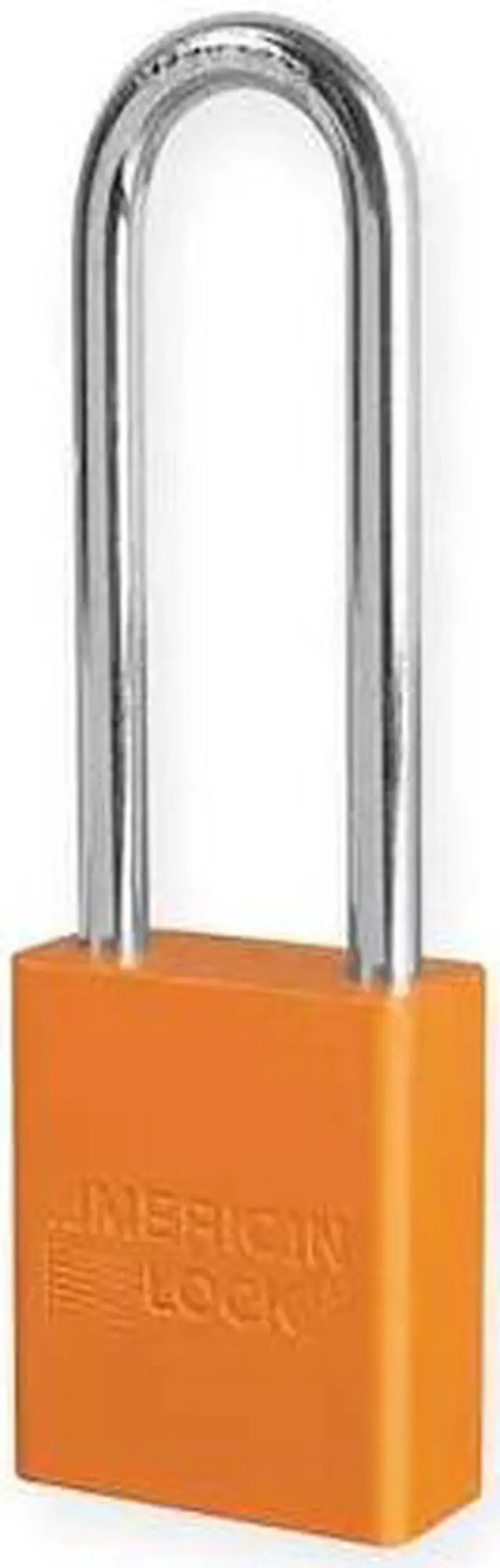 Lockout Padlock, Body Color Orange, Body Height 1 7/8 in, Body Material Aluminum, Body Thickness 3/4 in, Body Width 1 1/2 in, Header Not Applicable, Horizontal Shackle Clearance 13/16 in, Key Style Standard, Key Type Keyed Alike, Non-Removable Key No, Resistance Properties Corrosion Resistant, Shackle Diameter 1/4 in, Shackle Height 3 in, Shackle Material Boron Alloy, Shackle Type Extended, Vertical Shackle Clearance 3 in, Width Across Shackle 13/16 in, Body Material Coating Anodized. This item has been restricted from sale in the following state (s): []