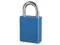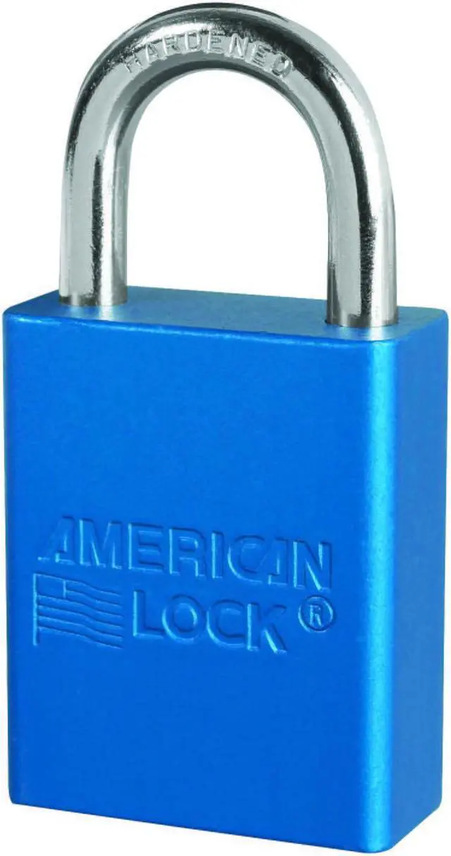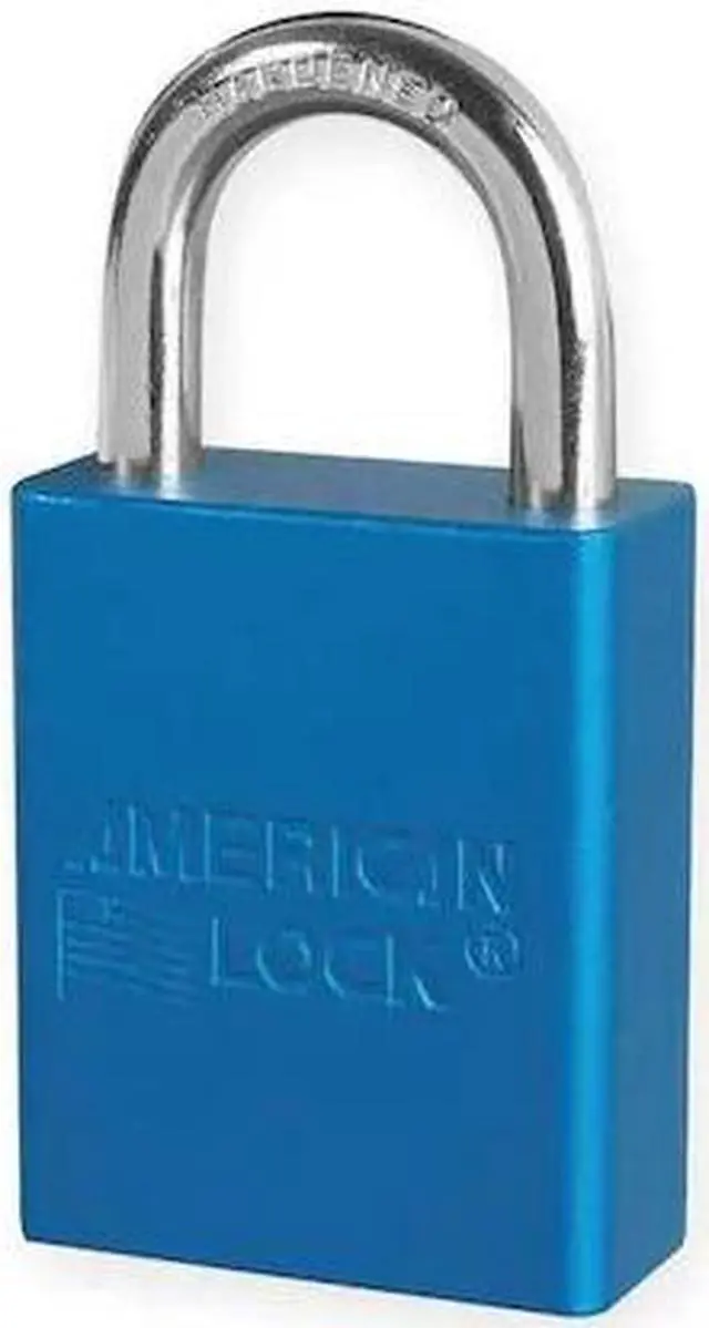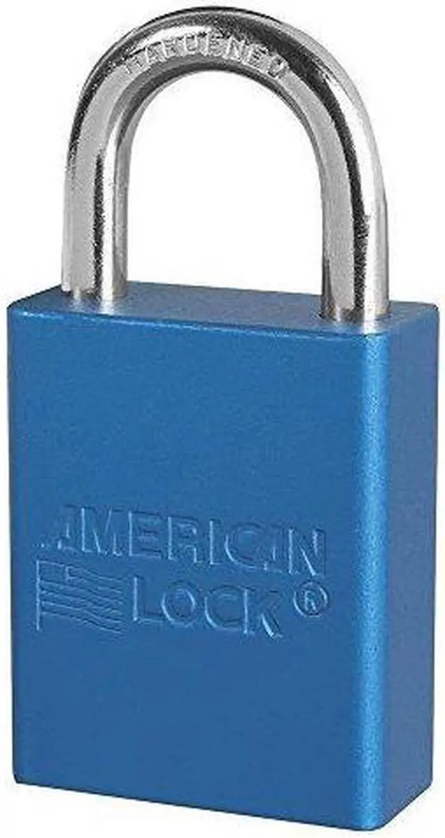 Lockout Padlock, Body Color Blue, Body Height 1 7/8 in, Body Material Aluminum, Body Thickness 3/4 in, Body Width 1 1/2 in, Header Not Applicable, Horizontal Shackle Clearance 13/16 in, Key Style Standard, Key Type Keyed Different, Non-Removable Key No, Resistance Properties Corrosion Resistant, Shackle Diameter 1/4 in, Shackle Height 1 in, Shackle Material Boron Alloy, Shackle Type Open, Vertical Shackle Clearance 1 in, Width Across Shackle 13/16 in, Body Material Coating Anodized. This item has been restricted from sale in the following state (s): []