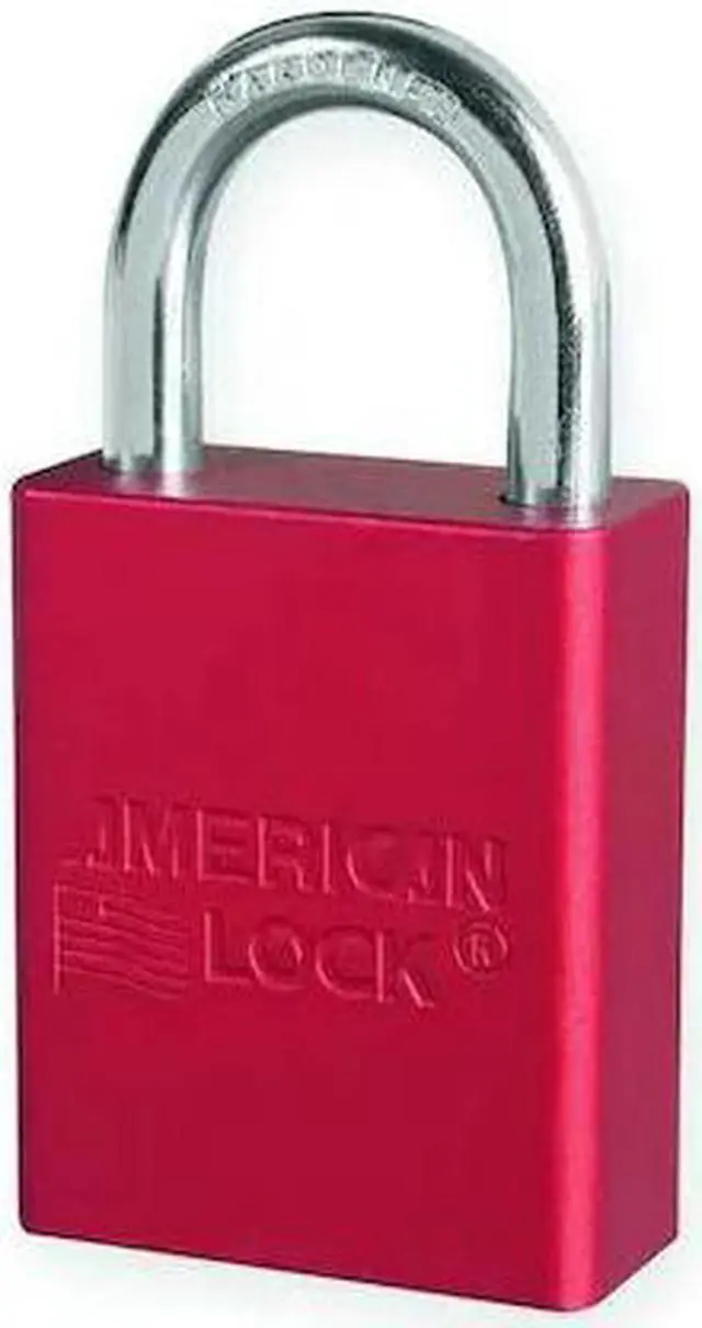 Lockout Padlock, Body Color Red, Body Height 1 7/8 in, Body Material Aluminum, Body Thickness 3/4 in, Body Width 1 1/2 in, Header Not Applicable, Horizontal Shackle Clearance 13/16 in, Key Style Standard, Key Type Keyed Alike, Non-Removable Key No, Resistance Properties Corrosion Resistant, Shackle Diameter 1/4 in, Shackle Height 1 in, Shackle Material Boron Alloy, Shackle Type Open, Vertical Shackle Clearance 1 in, Width Across Shackle 13/16 in, Body Material Coating Anodized. This item has been restricted from sale in the following state (s): []