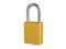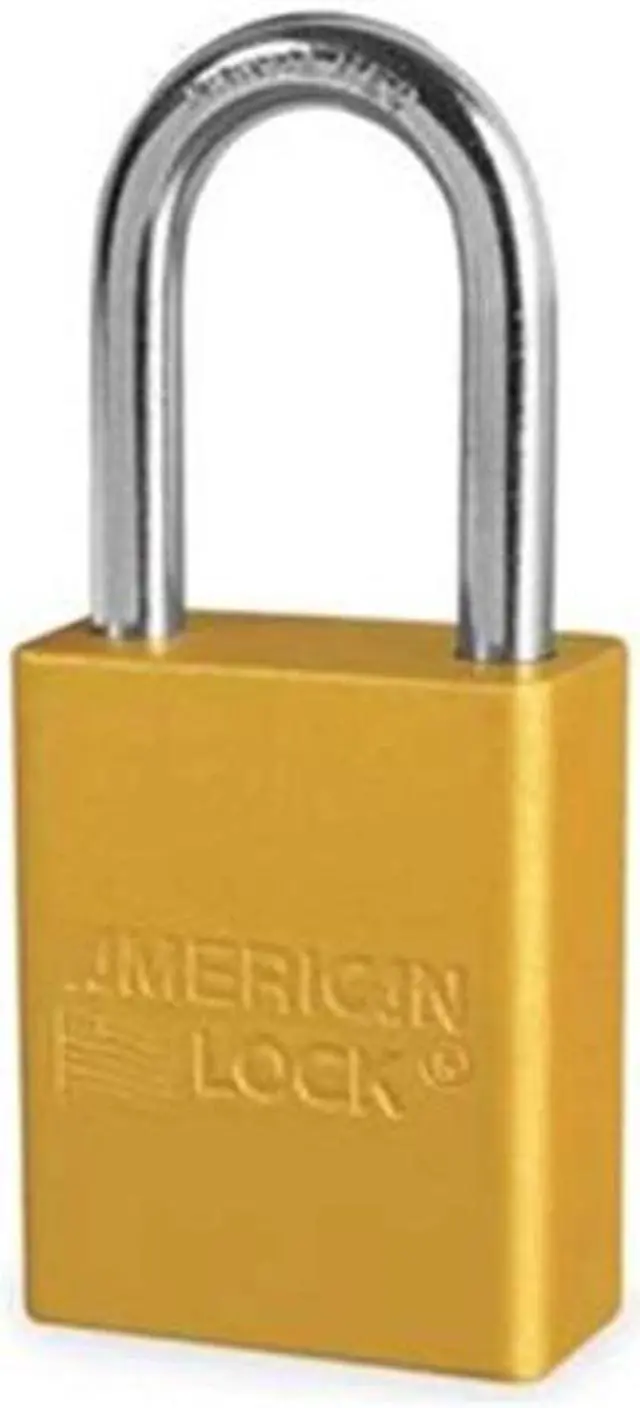 Lockout Padlock, Body Color Yellow, Body Height 1 7/8 in, Body Material Aluminum, Body Thickness 3/4 in, Body Width 1 1/2 in, Header Not Applicable, Horizontal Shackle Clearance 13/16 in, Key Style Standard, Key Type Keyed Alike, Non-Removable Key No, Resistance Properties Corrosion Resistant, Shackle Diameter 1/4 in, Shackle Height 1 1/2 in, Shackle Material Boron Alloy, Shackle Type Open, Vertical Shackle Clearance 1 1/2 in, Width Across Shackle 13/16 in, Body Material Coating Anodized. This item has been restricted from sale in the following state (s): []