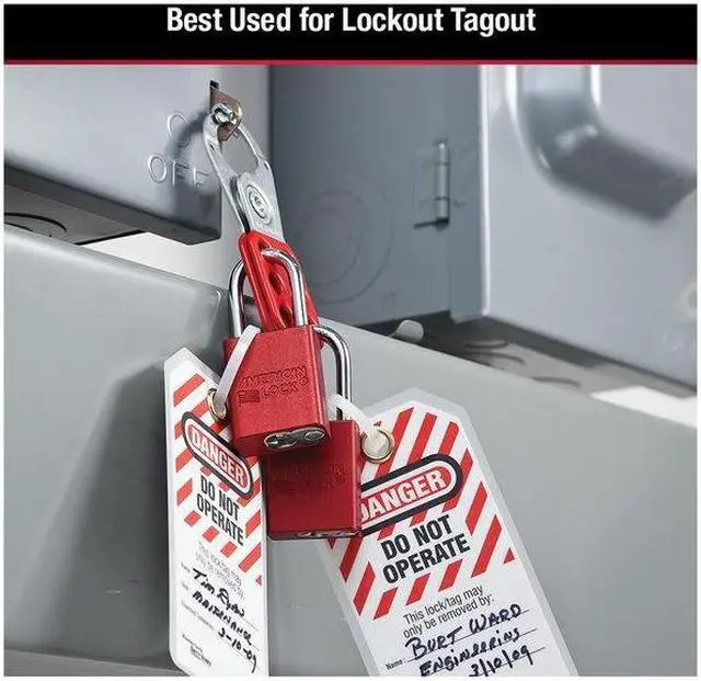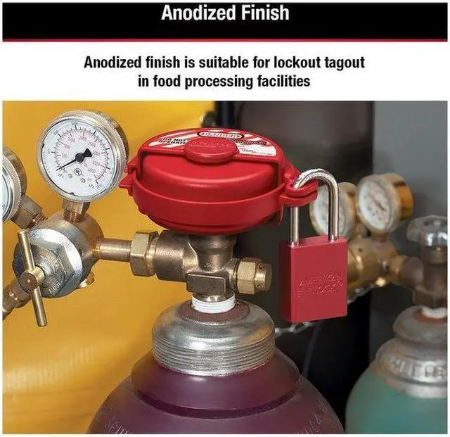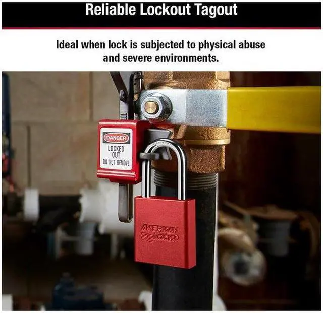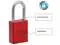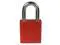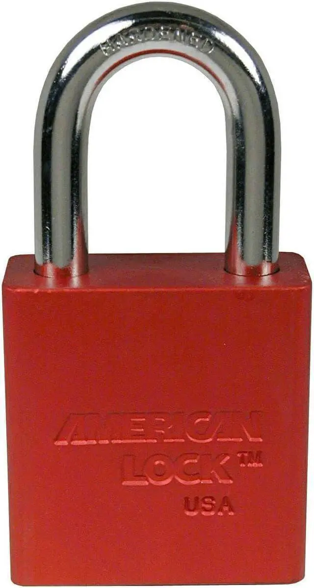 The American Lock No. A1106RED Aluminum Padlock features a 1-1/2in (38mm) wide red anodized aluminum body with a 1-1/2in (38mm) tall, 1/4in (6mm) diameter chrome plated, boron alloy shackle for superior cut resistance. The anodized finish makes padlock suitable for lockout in food processing facilities and corrosion resistant finish ideal for tough environments.. This item has been restricted from sale in the following state(s): []
