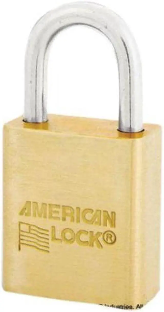 Padlock, Shackle Dia. 1/4 in, Shackle Height 1 in, Shackle Width 3/4 in, Shackle Material Brass, Body Height 1 45/64 in, Body Width 1 1/2 in, Body Thickness 3/4 in, Body Material Brass, Number of Bumpers 0, Number of Pins 5 Pin, Key Type Different, Control Key Registration Required No, Body Color Brass, Body Finish Brass, Keyway Type American AK5, Weather Resistant Yes, High Security Yes, Interchangeable Core No, Non Removable Key Yes, Padlock Body Shape Rectangular, Rekeyable No.