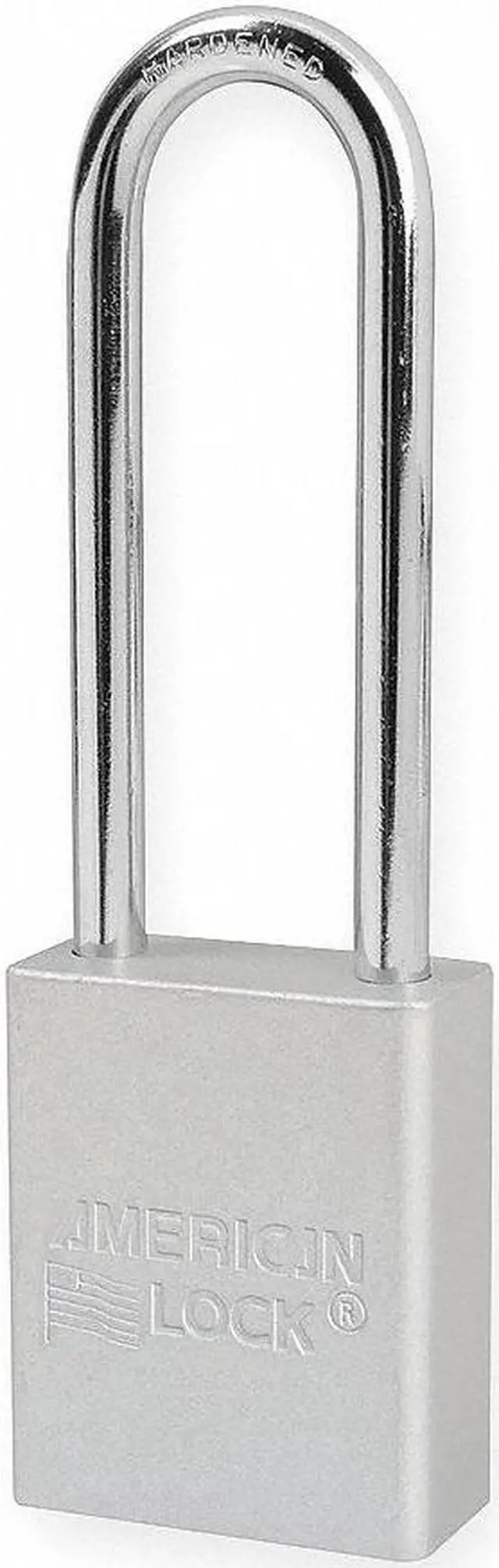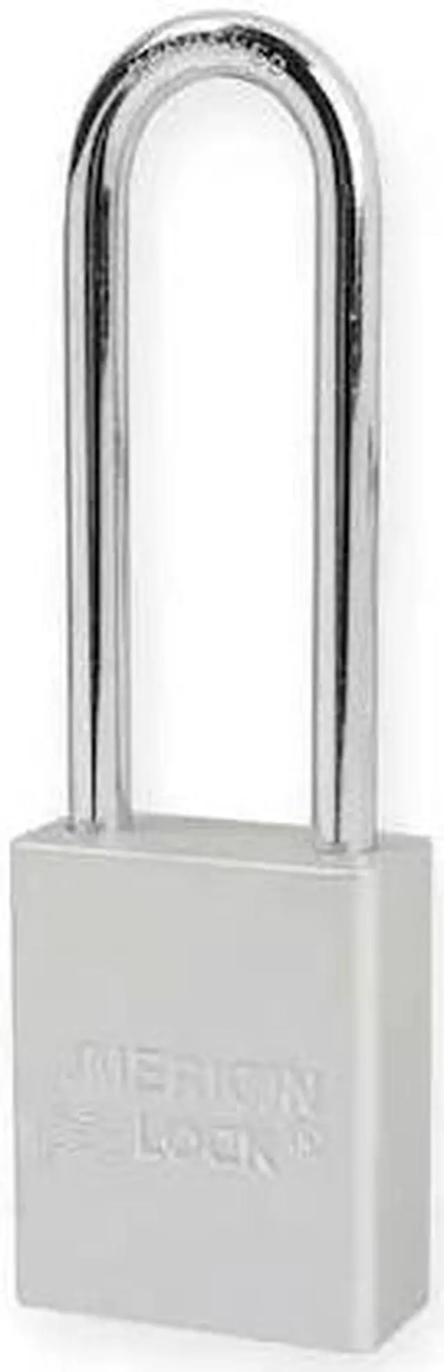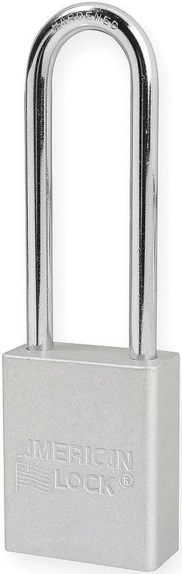 Lockout Padlock, Body Color Silver, Body Height 1 7/8 in, Body Material Aluminum, Body Thickness 3/4 in, Body Width 1 1/2 in, Header Not Applicable, Horizontal Shackle Clearance 13/16 in, Key Style Standard, Key Type Keyed Alike, Non-Removable Key No, Resistance Properties Corrosion Resistant, Shackle Diameter 1/4 in, Shackle Height 3 in, Shackle Material Boron Alloy, Shackle Type Extended, Vertical Shackle Clearance 3 in, Width Across Shackle 13/16 in, Body Material Coating Anodized. This item has been restricted from sale in the following state (s): []