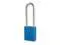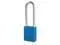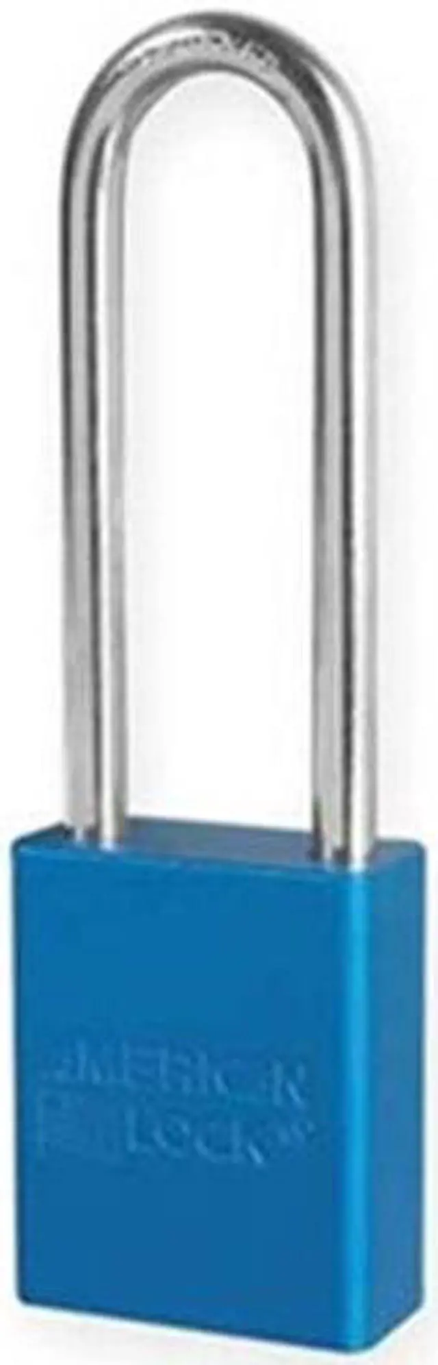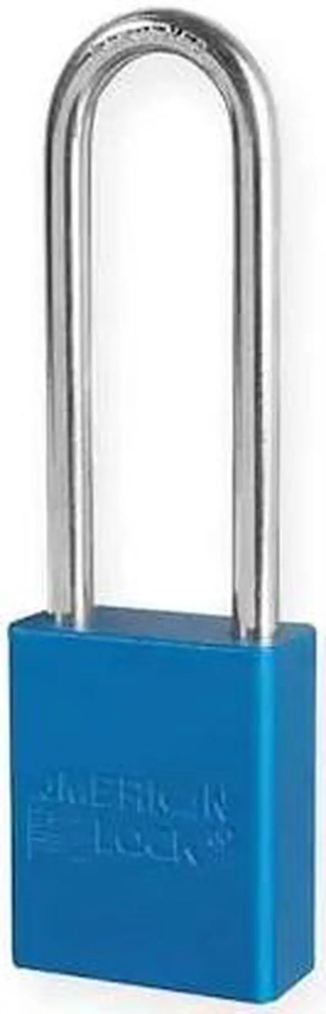 Lockout Padlock, Body Color Blue, Body Height 1 7/8 in, Body Material Aluminum, Body Thickness 3/4 in, Body Width 1 1/2 in, Header Not Applicable, Horizontal Shackle Clearance 13/16 in, Key Style Standard, Key Type Keyed Alike, Non-Removable Key No, Resistance Properties Corrosion Resistant, Shackle Diameter 1/4 in, Shackle Height 3 in, Shackle Material Boron Alloy, Shackle Type Extended, Vertical Shackle Clearance 3 in, Width Across Shackle 13/16 in, Body Material Coating Anodized. This item has been restricted from sale in the following state (s): []