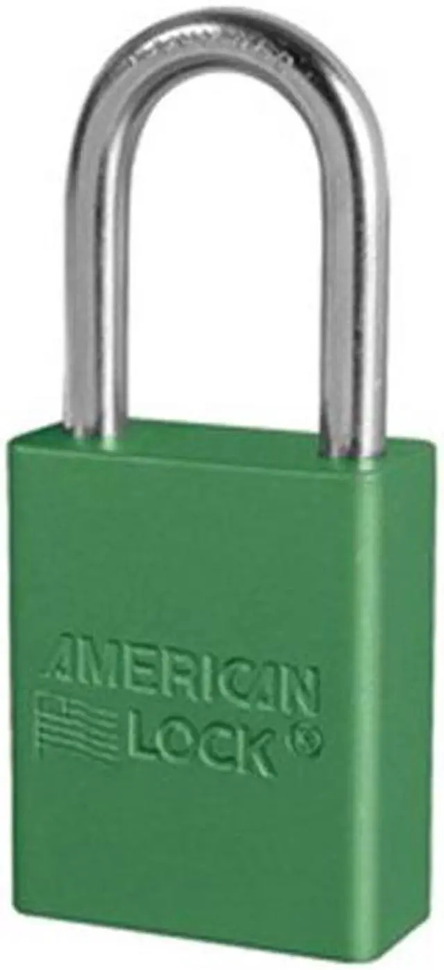 Lockout Padlock, Body Color Green, Body Height 1 7/8 in, Body Material Aluminum, Body Thickness 3/4 in, Body Width 1 1/2 in, Header Not Applicable, Horizontal Shackle Clearance 13/16 in, Key Style Standard, Key Type Keyed Alike, Non-Removable Key No, Resistance Properties Corrosion Resistant, Shackle Diameter 1/4 in, Shackle Height 1 1/2 in, Shackle Material Boron Alloy, Shackle Type Open, Vertical Shackle Clearance 1 1/2 in, Width Across Shackle 3/4 in, Body Material Coating Anodized. This item has been restricted from sale in the following state (s): []
