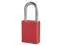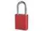 Lockout Padlock, Body Color Red, Body Height 1 7/8 in, Body Material Aluminum, Body Thickness 3/4 in, Body Width 1 1/2 in, Header Not Applicable, Horizontal Shackle Clearance 13/16 in, Key Style Standard, Key Type Keyed Alike, Non-Removable Key No, Resistance Properties Corrosion Resistant, Shackle Diameter 1/4 in, Shackle Height 1 1/2 in, Shackle Material Boron Alloy, Shackle Type Open, Vertical Shackle Clearance 1 1/2 in, Width Across Shackle 3/4 in, Body Material Coating Anodized. This item has been restricted from sale in the following state (s): []