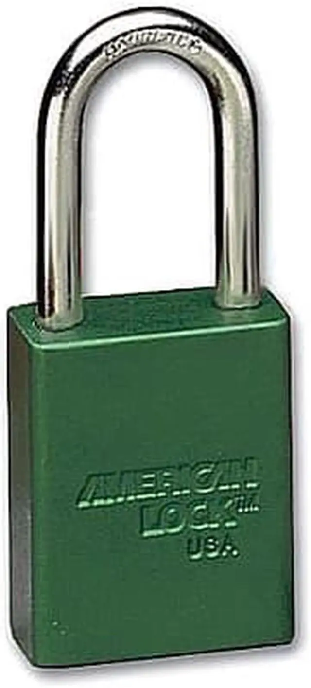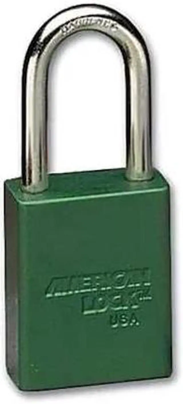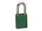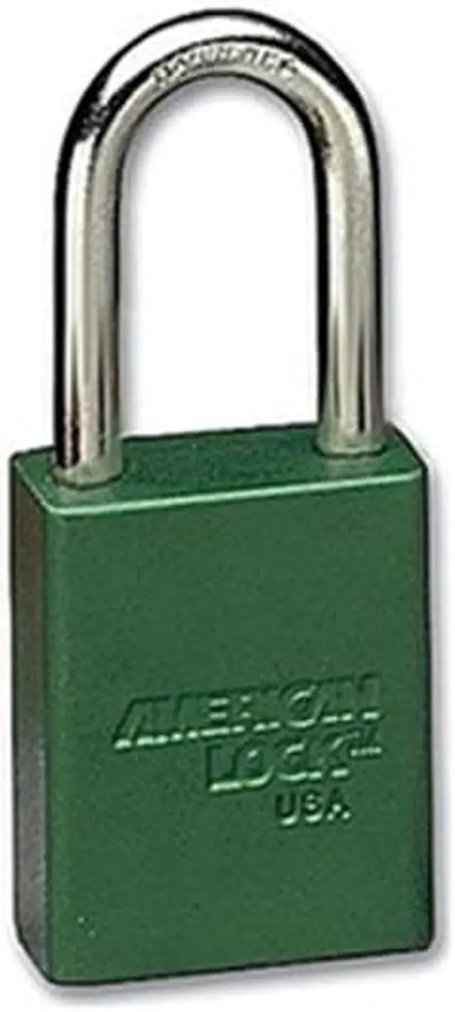 Lockout Padlock, Body Color Green, Body Height 1 7/8 in, Body Material Aluminum, Body Thickness 3/4 in, Body Width 1 1/2 in, Header Not Applicable, Horizontal Shackle Clearance 13/16 in, Key Style Standard, Key Type Keyed Alike, Non-Removable Key No, Resistance Properties Corrosion Resistant, Shackle Diameter 1/4 in, Shackle Height 1 1/2 in, Shackle Material Boron Alloy, Shackle Type Open, Vertical Shackle Clearance 1 1/2 in, Width Across Shackle 3/4 in, Body Material Coating Anodized. This item has been restricted from sale in the following state (s): []