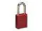 Lockout Padlock, Body Color Red, Body Height 1 7/8 in, Body Material Aluminum, Body Thickness 3/4 in, Body Width 1 1/2 in, Header Not Applicable, Horizontal Shackle Clearance 13/16 in, Key Style Standard, Key Type Keyed Alike, Non-Removable Key No, Resistance Properties Corrosion Resistant, Shackle Diameter 1/4 in, Shackle Height 1 1/2 in, Shackle Material Boron Alloy, Shackle Type Open, Vertical Shackle Clearance 1 1/2 in, Width Across Shackle 3/4 in, Body Material Coating Anodized. This item has been restricted from sale in the following state (s): []