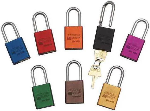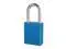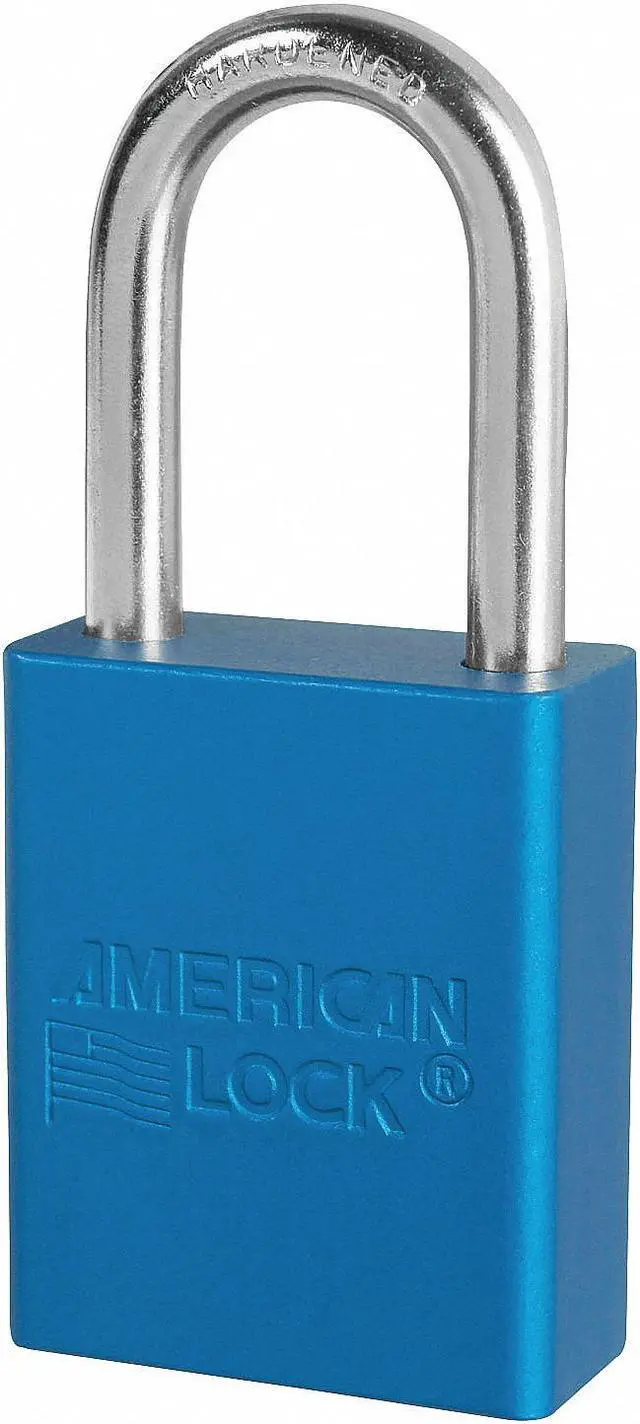 Lockout Padlock, Body Color Blue, Body Height 1 7/8 in, Body Material Aluminum, Body Thickness 3/4 in, Body Width 1 1/2 in, Header Not Applicable, Horizontal Shackle Clearance 13/16 in, Key Style Standard, Key Type Keyed Alike, Non-Removable Key No, Resistance Properties Corrosion Resistant, Shackle Diameter 1/4 in, Shackle Height 1 1/2 in, Shackle Material Boron Alloy, Shackle Type Open, Vertical Shackle Clearance 1 1/2 in, Width Across Shackle 3/4 in, Body Material Coating Anodized. This item has been restricted from sale in the following state (s): []