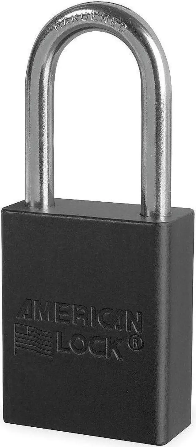 Lockout Padlock, Body Color Black, Body Height 1 7/8 in, Body Material Aluminum, Body Thickness 3/4 in, Body Width 1 1/2 in, Header Not Applicable, Horizontal Shackle Clearance 13/16 in, Key Style Standard, Key Type Keyed Different, Non-Removable Key No, Resistance Properties Corrosion Resistant, Shackle Diameter 1/4 in, Shackle Height 1 1/2 in, Shackle Material Boron Alloy, Shackle Type Open, Vertical Shackle Clearance 1 1/2 in, Width Across Shackle 13/16 in, Body Material Coating Anodized. This item has been restricted from sale in the following state (s): []